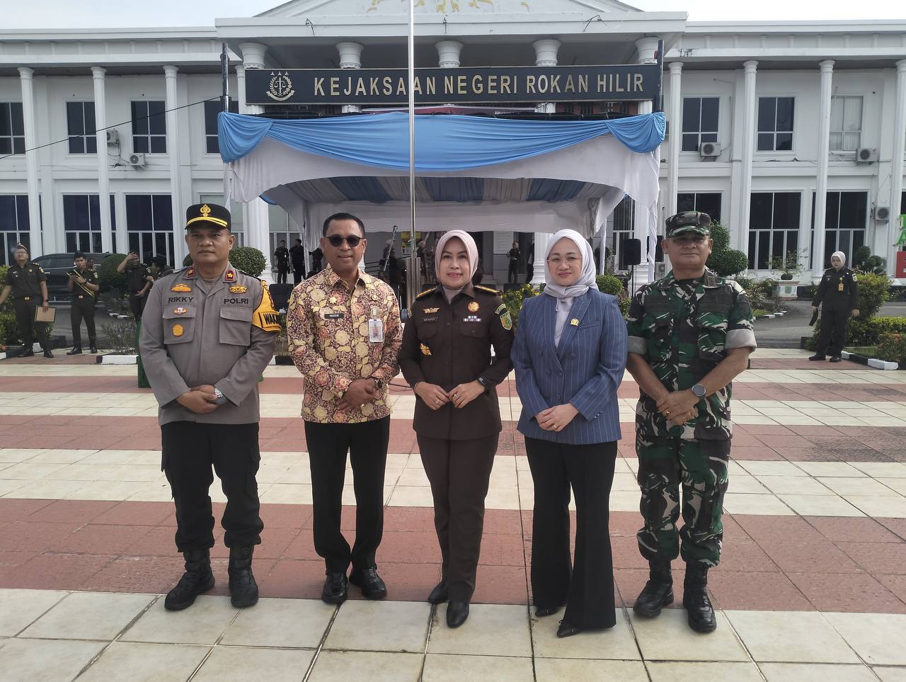 Apel dipimpin langsung oleh Pelaksana Tugas Kepala Kejari Rohil, Dwi Astuti Beniyati, S.H., M.H., dan diikuti seluruh jajaran internal, mulai dari para kepala seksi, jaksa fungsional hingga staf pegawai. Kegiatan ini juga disaksikan unsur Forum Koordinasi Pimpinan Daerah (Forkopimda), di antaranya Sekda Rohil Fauzi Efrizal, Ketua DPRD Rohil Ilhami, Wakapolres Rohil Kompol Rikky Operiady, serta Pasi OPS Kodim 0321/Rohil Kapten Arh. Simsom Siregar.